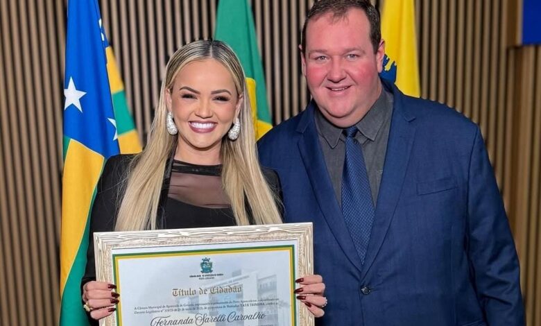 Na segunda-feira, 23 de junho, o nobre vereador concedeu Título de Cidadã Aparecidense à advogada criminalista Dra Fernanda Sarelli, que agradeceu ao vereador: “Uma honra que carrego com o coração transbordado de gratidão. Meu agradecimento especial ao amigo Tatá, por reconhecer minha luta pelas mulheres, pelas crianças e por Aparecida. Obrigada por acreditar em mim”, disse ela.