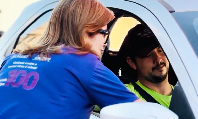A primeira-dama Alessandra Assis e sua equipe, participou na sexta-feira (27), na Avenida Goiás, de uma panfletagem em alusão ao Junho Violeta, mês de combate à violência contra a pessoa idosa.