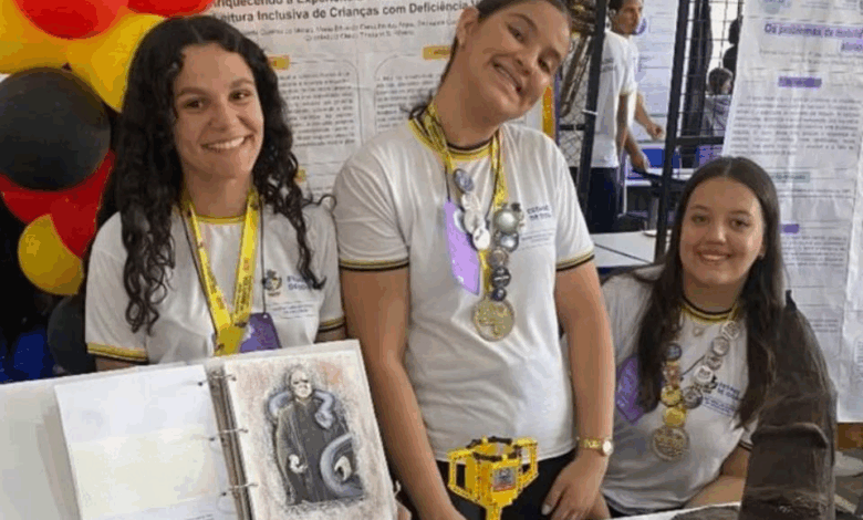As estudantes Maria Eduarda Queiroz, Maria Eduarda Carvalho e Geovanna Caetano ganharam a competição com o projeto Enriquecendo a Experiência Literária: Estratégias para a Leitura Inclusiva de Crianças com Deficiência Visual.