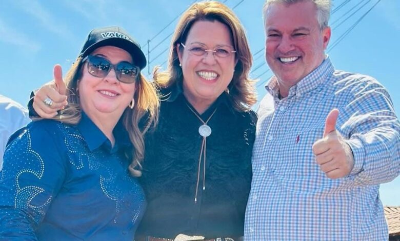 Rosângela Rezende continuou: “Desejo saúde, sabedoria e realizações, para que continue trabalhando com dedicação pelo futuro desse município tão especial e de pessoas tão queridas, concluiu. Na foto, a deputada está ladeada pelo casal número 1 de Itarumã: prefeito Luiz Henrique e primeira-dama Elcione Lima.