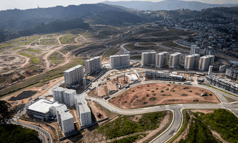 No outro lado do espectro, a gigante MRV, a mesma do Grand Reserva, está testando um discurso diferente para o Sete Sóis. O projeto é superlativo, com um milhão de metros quadrados (equivalente a 100 quarteirões) e promete áreas verdes abertas para moradores do entorno, comércio acessível a pé e até usa o conceito da “cidade de quinze minutos“. A contradição de transpor o conceito parisiense de cidade para um condomínio não passa desapercebida.