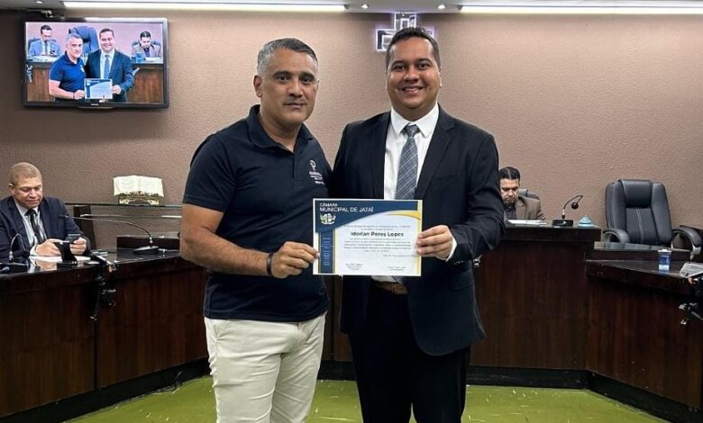 Foi uma noite mais que especial para aqueles que receberam a homenagem. Vale lembrar que o corretor de imóveis exerce um papel fundamental no mercado imobiliário e na vida das pessoas. Na foto, o presidente da Câmara Municipal, entrega o diploma para o proprietário da IP Imóveis, Iderlan Peres, que tem um trabalho destacado no ramo imobiliário em Jataí e na região.