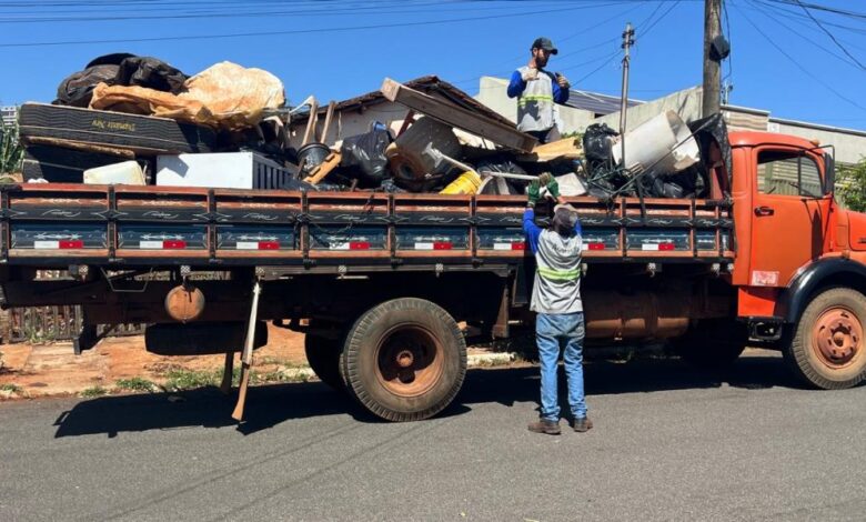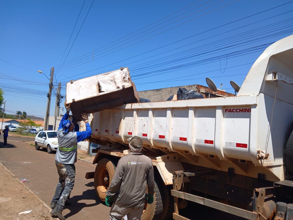 Foram recolhidos materiais inservíveis, incluindo pneus, garrafas, latas, plásticos e outros recipientes que poderiam acumular água e servir como criadouros para o Aedes aegypti.