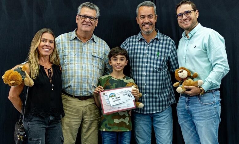 A formatura do PROERD reuniu 260 alunos do 5º ano das escolas municipais de Chapadão do Céu no dia 04/11, no ginásio de esportes. O evento contou com a presença do prefeito Vinícius Terin, vice-prefeito Paulinho, vereadora Nicki, autoridades municipais, diretores, professores e familiares. Houve premiação das melhores redações de cada turma, com entrega de valores em dinheiro, e todos os alunos receberam o tradicional “Leozinho” de pelúcia, símbolo do programa.