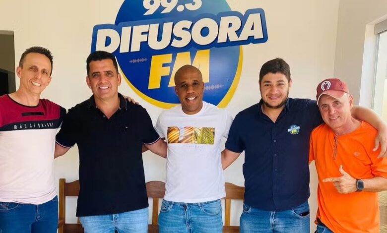 Borges vestiu a camisa de grandes clubes do Brasil: São Paulo, Cruzeiro, Santos, além de atuar na seleção brasileira e no futebol japonês. Na Jataiense, ele foi um dos principais destaques do Campeonato Goiano de 2024. Dos vários locais que visitou, Borges foi entrevistado por Carlos Henrique, no Esportes Difusora. Na foto: Carlos Henrique, Humberto Macchione, Borges, Marcos e Valter Morais.