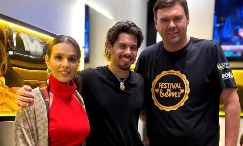 Um grande show em Caiapônia abriu o Festival do Bem na cidade. Logo na primeira noite, o cantor Zé Felipe arrasou, levando energia, música boa e aquele astral que só ele tem. O casal gestores do município, prefeito Argemiro Rodrigues e primeira-dama Bianca Cruvinel, deram as boas-vindas ao jovem cantor e curtiram seu show com muita alegria. “Caiapônia vive um momento especial, de festa, de encontro e de muita vibração positiva”, declarou o prefeito.