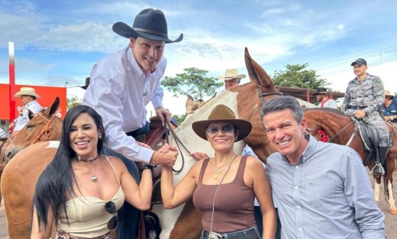 No decorrer dessa semana, o prefeito de Mineiros Aleomar Rezende, se encontrou com o vice-governador Daniel Vilela em Iporá, durante a abertura do 18° Encontro Nacional de Muladeiros – uma das festas mais tradicionais do estado, que contou com a presença de várias autoridades goianas. Na foto, Aleomar está ao lado de Daniel Vilela, Pollyanna Martins e Patrícia Silva. “Seguimos fortalecendo parcerias para nossa região”, comentou o prefeito.