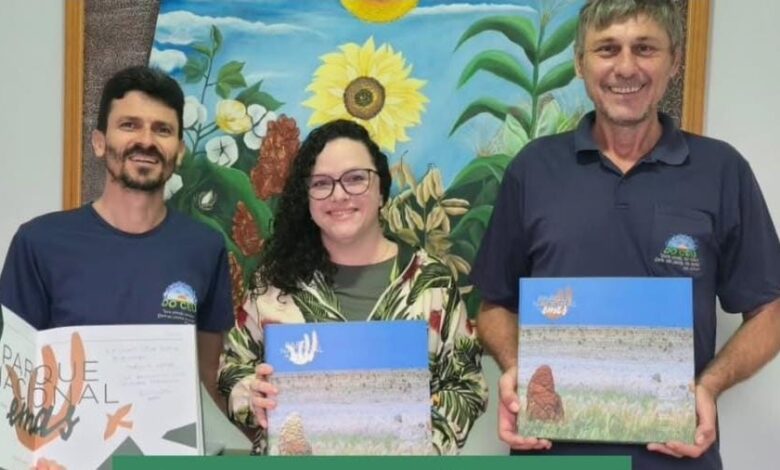 A Secretaria Municipal de Educação e o Conselho Municipal de Educação de Chapadão do Céu receberam a doação do livro Parque Nacional das Emas no Coração do Cerrado, entregue pela coordenadora de uso público do Parque Nacional das Emas, Izabel Camille Nominato.