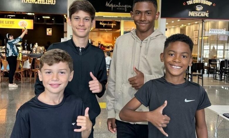 Seis jovens promessas do futebol jataiense, da Escolinha RM, partiram em busca de realizar sonhos. De acordo com o professor José Modesto, exímio formador de talentos, desde o início desta semana os atletas Sub-14 (Lucas e Osmar), estão passando por avaliação no Coimbra/FC Porto), e no Palmeiras, os Sub-09 (Felipe) e Sub-10 (João Phelipe) – na foto. Além desses, também são avaliados no Sub-11 (Lucas e Tiago).